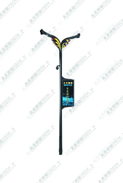 該款智慧路燈主打典雅黑色系,燈頭為蝴蝶雙翼展開(kāi)造型,兩翼尾為L(zhǎng)ED節(jié)能照明燈、LED裝飾燈,燈桿腹部裝有信息發(fā)布屏(LED燈桿屏),實(shí)現(xiàn)燈桿網(wǎng)絡(luò)化、數(shù)字化信息管理宣傳,再配以必要的體積輕小的半球形攝像頭對(duì)必要路段進(jìn)行監(jiān)控。本款智慧路燈配置簡(jiǎn)約,造型典雅大方,現(xiàn)代化屬性強(qiáng),可適用于各種商業(yè)街道、小區(qū)、校園等場(chǎng)所。